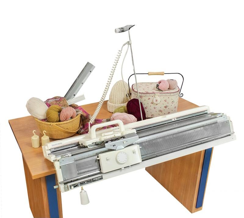 The knitting workshop awaits you: class 5 machines, a steam iron with a steam generator, and everything else you need for machine knitting.